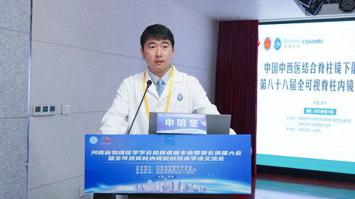 河南省直第三人民医院脊柱微创外科副主任申明奎博士主持开幕式
