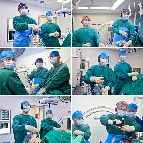为帮助大家学习脊柱微创技术,普及脊柱内镜技术规范化操作,此次沙龙共设置6台手术演示,分别是由马海军主刀的“内镜下后路(C5/6)颈椎椎管减压术(Endo-PCCD)”;马海军主刀的“内镜下后路(T3/4)胸椎椎管减压术(Endo-PTCD)”;马海军主刀的“内镜下前路(C5/6)颈椎椎间融合术(Endo-ACDF)”;马海军主刀的“内镜下后路(T10/11)胸椎椎管减压术 (Endo-PTCD)”;李亚洲主刀的“内镜下后路(L4/5)腰椎椎管减压术(Endo-PLCD)”;贺毅、孙虓主刀的“机器人辅助内镜下经椎间孔(L4/5)腰椎椎体间融合术(Endo-TLIF)”。手术直播过程中,由闫明教授、王东教授、马海军主任、宋坤锋组长解说手术操作要点,并与现场多位专家,共同探讨脊柱疑难病例。