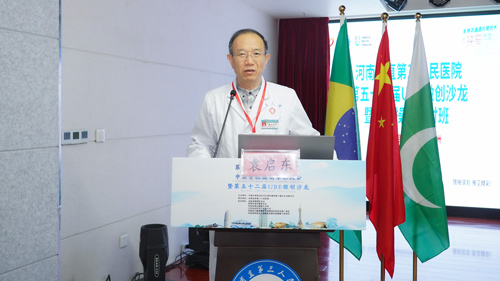 河南省直第三人民医院脊柱微创外科一病区主任、UBE(单侧双通道脊柱内镜)首席专家杨贺军致开幕词