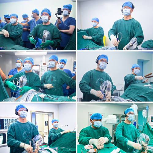 据了解,本次沙龙共设置6台机器人辅助下UBE手术直播,帮助大家学习掌握脊柱微创技术。6台手术演示分别是由杨贺军主刀的“UBE下胸椎(T9-11)椎管扩大减压术”;唐骞主刀的“UBE下颈椎(C5/6)后路椎板开窗髓核摘除术”;杨贺军主刀的“UBE下颈椎(C5-7)后路椎板开窗髓核摘除术”;王宇鹏主刀的“机器人辅助UBE下腰椎(L4/5)椎间植骨融合经皮钉棒内固定术”;唐骞主刀的“UBE下胸椎(T11/12)椎管扩大减压术”;王宇鹏主刀的“UBE下腰椎(L5/S1)突出髓核摘除”。手术直播过程中,由李广州教授、李晓祥教授解说手术操作要点,并与现场多位专家,共同讨论解答脊柱疑难病例。