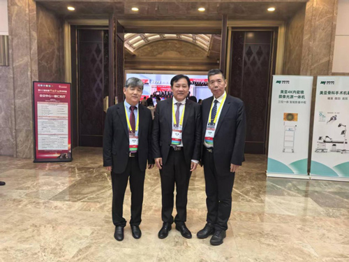 朱卉敏教授与本次大会主席、中国康复医学会脊柱专业委员会主任委员、首都医科大学附属北京朝阳医院海涌教授,国内著名脊柱外科专家郑召民教授合影留念,值得一提的是,三位专家均为河南籍的脊柱外科专家。