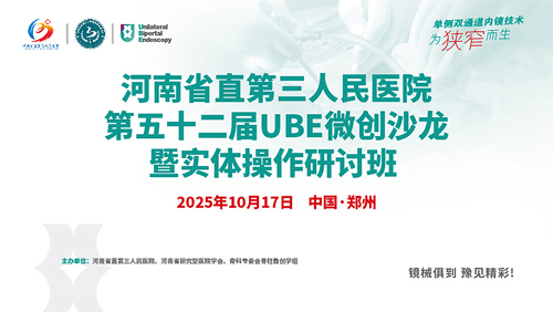 健康大河南讯:(图文:鲁亚 方帅)为推动UBE微创技术发展,守护脊柱病患健康。2025年10月17日,由河南省直第三人民医院、河南省研究型医院学会骨科专委会脊柱微创学组主办的“河南省直第三人民医院第52届UBE微创沙龙”在河南省直第三人民医院东院区(以下统称“河南省直三院”)成功举办。
