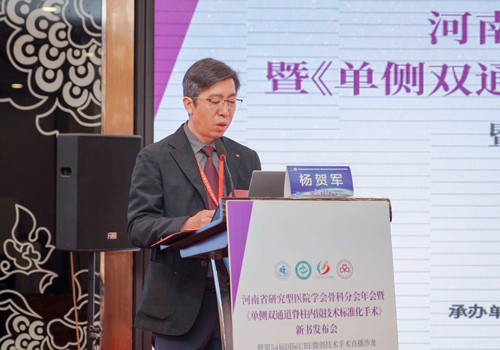 河南省直第三人民医院脊柱微创外科一病区主任、UBE(单侧双通道脊柱内镜)首席专家杨贺军教授致欢迎辞
