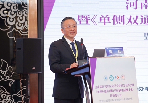 皮国富教授强调,河南省研究型医院学会骨科分会自成立以来,始终秉持“学术引领、规范赋能、创新发展”的宗旨,一如既往地遵守河南省研究型医院学会章程,贯彻落实各项工作,积极推动区域内骨科的学术交流与技术推广。本次活动聚焦UBE微创技术这一前沿方向,整合年会研讨、新书发布、手术直播三大核心内容,形成了“理论-标准-实践”三位一体的学术交流模式。希望与会同仁借助这一平台,深入交流探讨,为健康中原建设增砖添瓦。