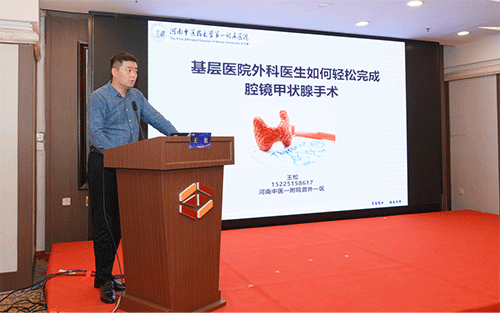 此外,会议还安排了手术视频播放环节,由河南中药大学第一附属医院普外科一区的夏长军教授、吴峰教授等专家进行了腔镜颈淋巴结侧方清扫术、经口入路腔镜甲状腺癌根治术等手术演示。手术视频不仅展示了专家们精湛的手术技艺,也让与会者更直观地了解了腔镜甲状腺手术的规范化步骤和操作要点。