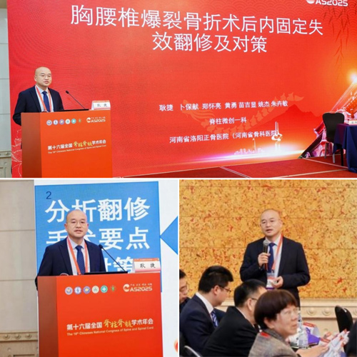河南省洛阳正骨医院(河南省骨科医院)脊柱微创外一科耿捷医生在脊柱脊髓损伤论坛报告了《胸腰椎爆裂骨折术后内固定失效原因分析及对策》,系统总结了临床常见问题并提出切实可行的解决方案,体现出医院在复杂脊柱损伤救治方面的领先水平。